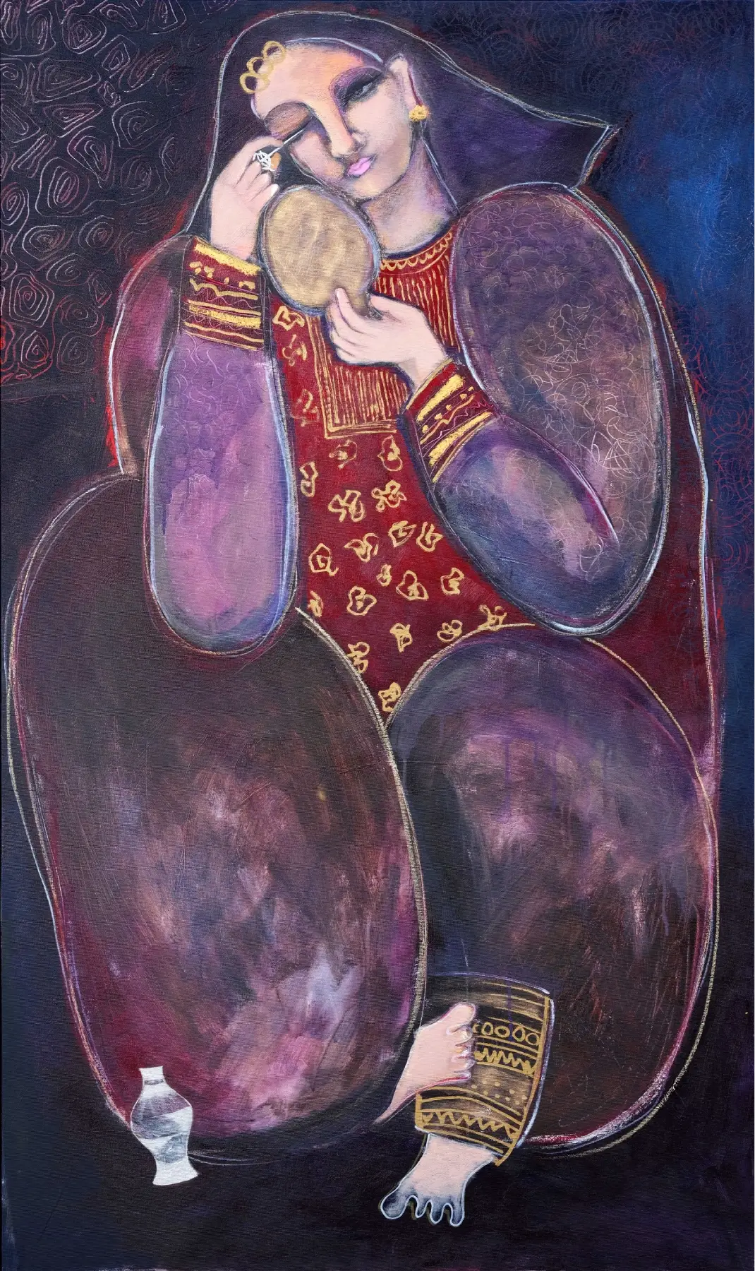 Welcome to the comprehensive digital gallery of Alia Al Farsi’s artistic journey—from her earliest works to her most recent creations. Spanning decades, this gallery offers a rare opportunity to witness the evolution of one of Oman’s most celebrated contemporary artists, whose practice blends personal expression, cultural heritage, and universal emotion.