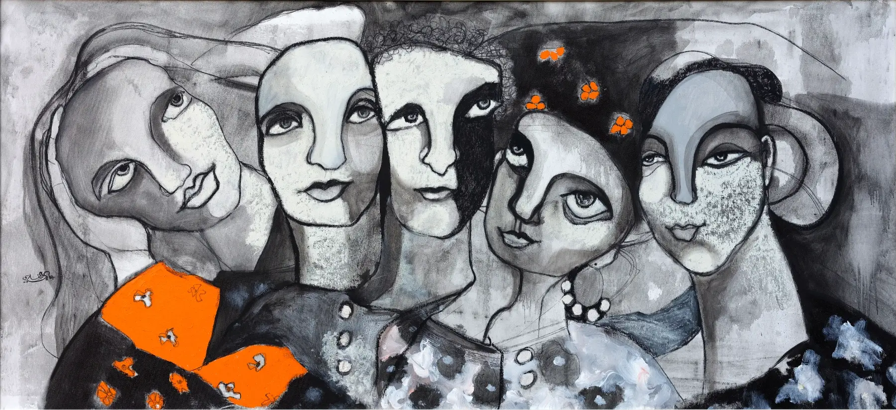 At the heart of this gallery is Al Farsi’s enduring fascination with the human face. For her, each face is a reflection of inner truths—subtle expressions that reveal love, resilience, and the complexity of the human spirit. Whether drawn from imagination or inspired by real individuals, her portraits invite viewers to see beyond surface impressions and connect on a deeper emotional level.